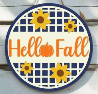 “Hello Fall” Round Sign Project with Flowers. This product arrives as unfinished MDF for you to finish any way you want!