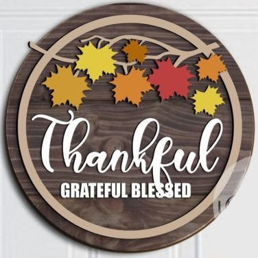 “Thankful Grateful Blessed” Round Sign Project with Leaves.