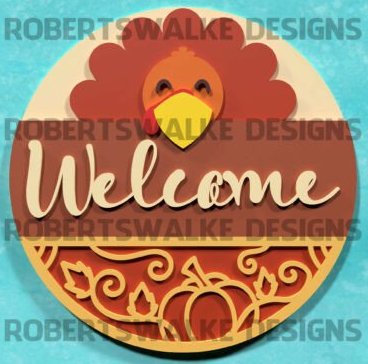 “Welcome” Round Sign Project withTurkey and Pumpkin.